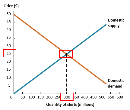 - the domestic price and quantity is determined by the intersection of the domestic supply and domestic demand curves