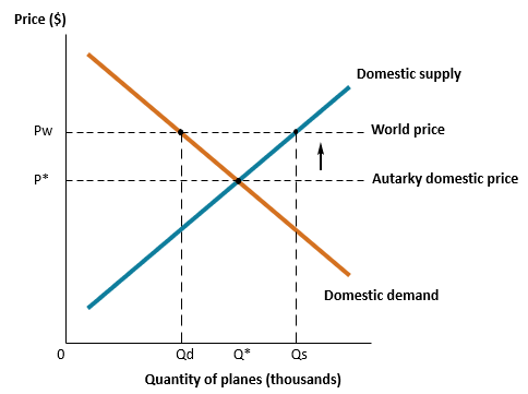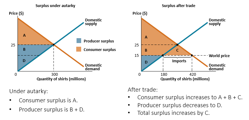 - imports make up the difference between domestic supply and demand, eliminating the shortage
