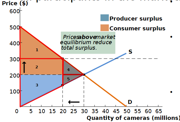 假设价格高于均衡价格,那么就会发生供给过剩(Surplus);假设价格低于均衡价格,那么就会发生需求不足(Shortage)。