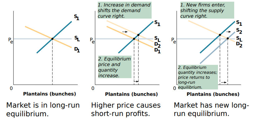 假设对完全竞争商品的需求增加,短期和长期会发生什么情况?