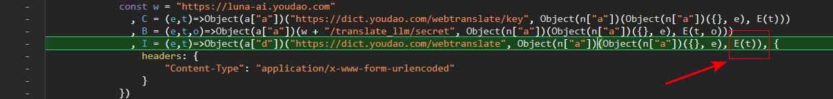(e,t)是 key 值a["d"]返回一个Promise对象,等下细说e是表单数据的一部分,里面包含了我们要翻译的单词的明文n["a"]可以不深究,你只需要知道它可以把多个对象合并成一个。事实上,它的作用就是把e和E(t)返回的两个表单数据合并成一个