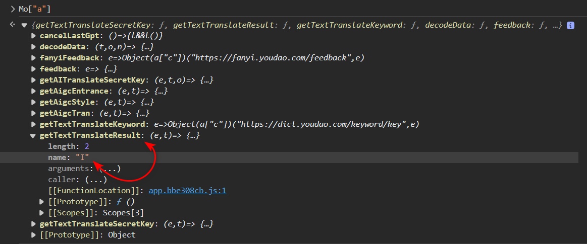 Mo["a"].getTextTranslateResult() 正是函数 I!