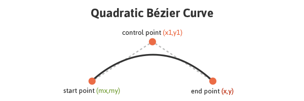 控制点本身不位于最终渲染的曲线上,但起到了类似于引力的作用,将起点到终点的连线向自身方向拉扯,从而形成特定的弧度。