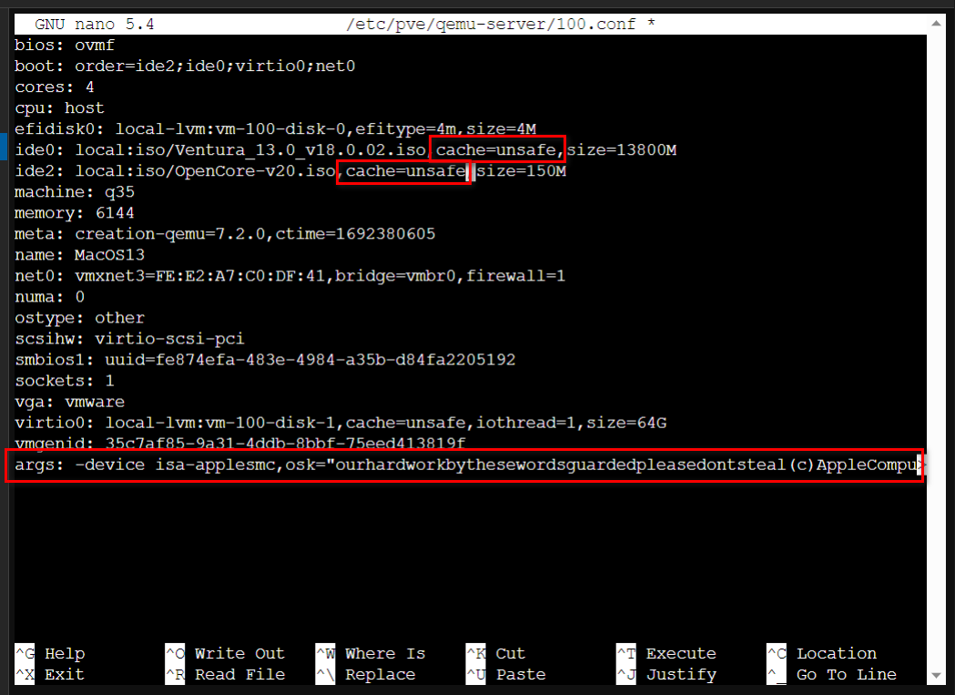 2nano /etc/pve/qemu-server/VM的ID.conf