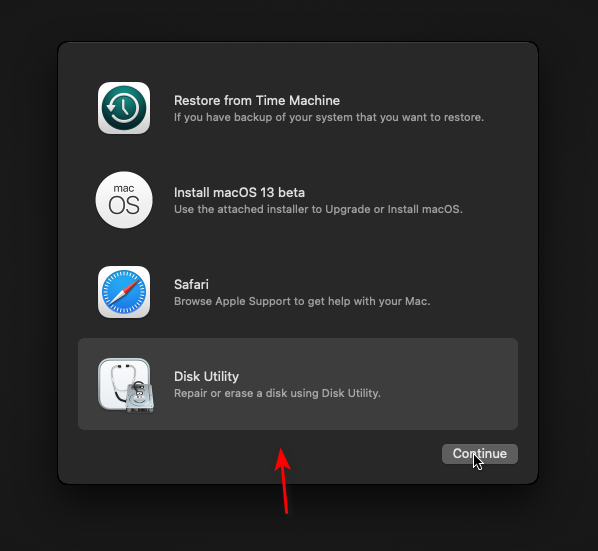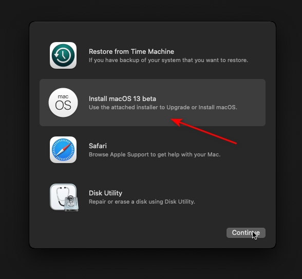 结束后左上角关闭 Disk Utility,接着点击 Install macOS Ventura。